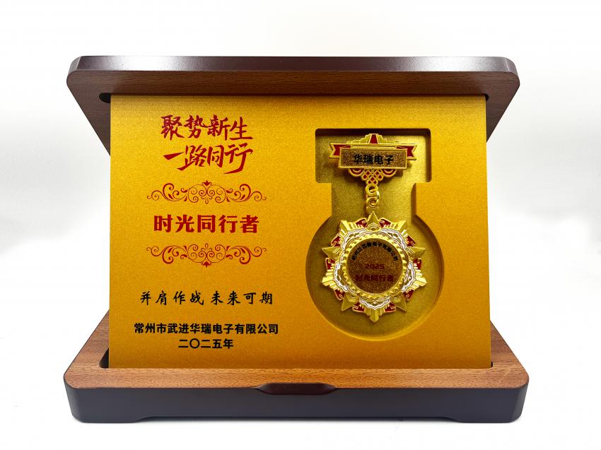 會議表彰環節成為焦點,華瑞電子為今年會微電子頒發 “2025時光同行者” 榮譽獎牌,以表彰其在合作中的技術貢獻與穩定供應保障。獎牌的授予,既是對雙方過往合作成果的肯定,更是對未來協同發展的期許。